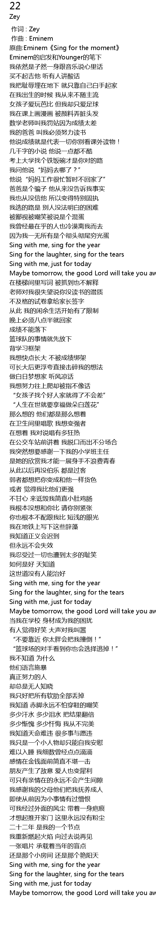 | [00:01.682] | 原曲:Eminem《Sing for the moment》 |