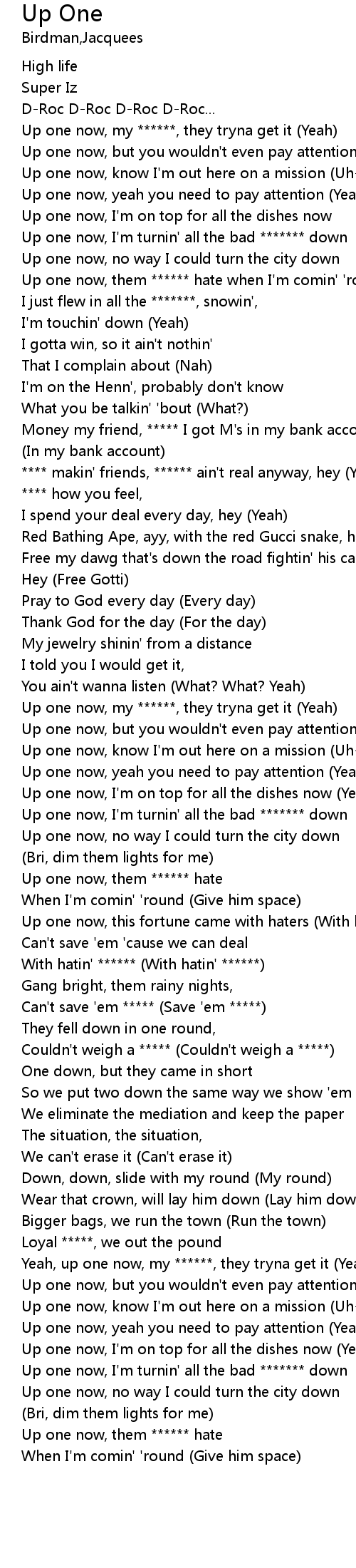 | [00:37.75] | Up one now, them ****** hate when I'm comin' 'round |