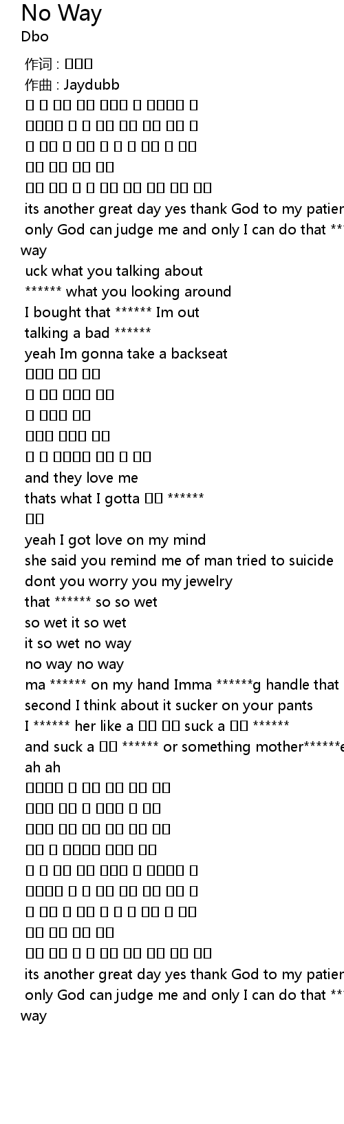 | [00:17.401] | only God can judge me and only I can do that really no way no way |