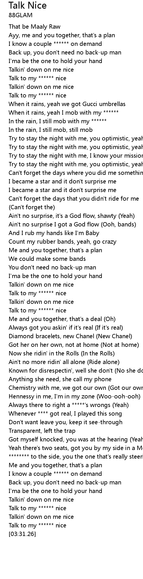 | [00:43.53] | Talk to my ****** nice |
