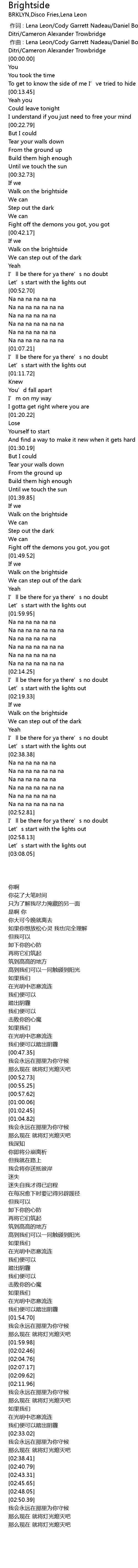 | [00:00.000] | 作词 : Lena Leon/Cody Garrett Nadeau/Daniel Boselovic/Nicholas Ditri/Cameron Alexander Trowbridge |