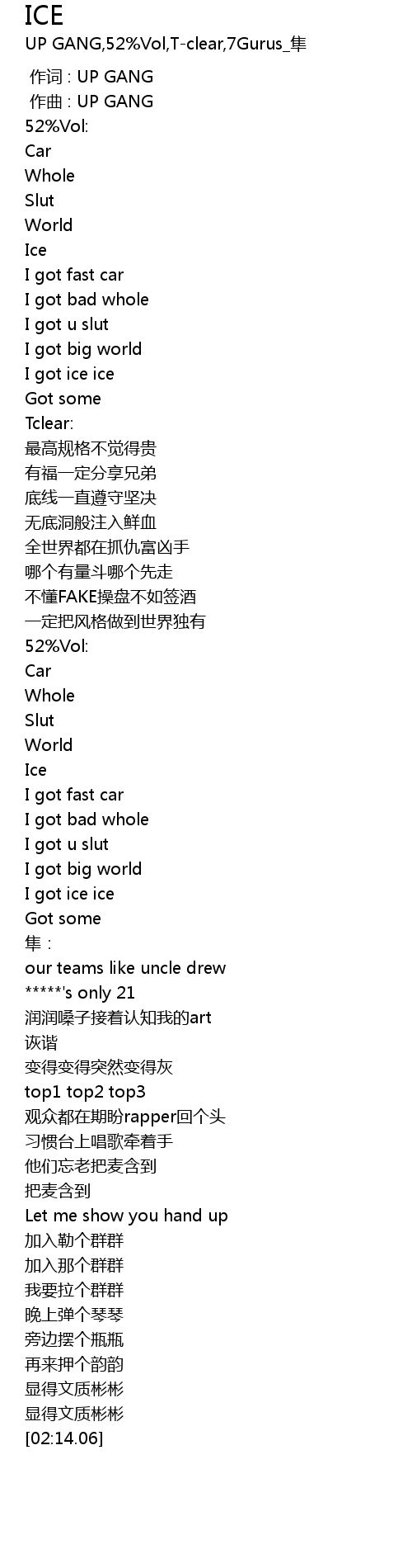 | [00:01.000] | zuo ci : UP GANG |