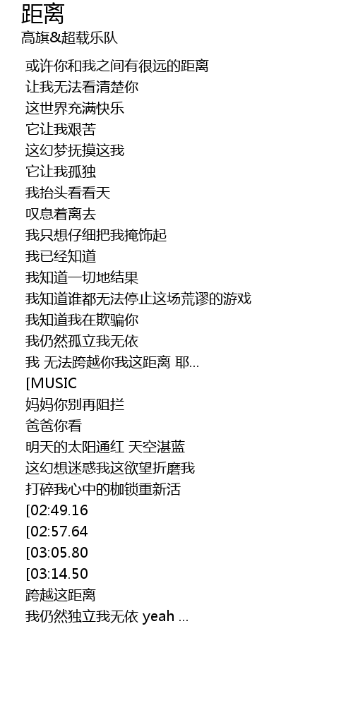 | [04:24.54] [03:14.50] | 我无法跨越你我的距离 yeah |