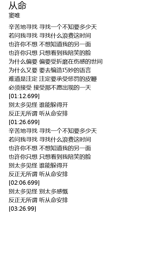 | [01:56.699] | 反正无所谓 听从命安排 |