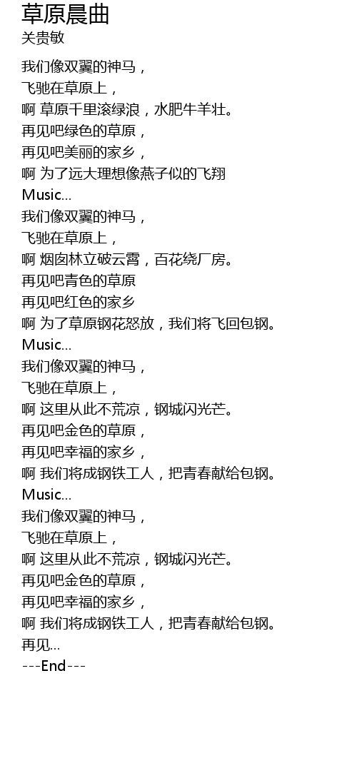 | [01:34.400] | 啊 为了草原钢花怒放,我们将飞回包钢。 |