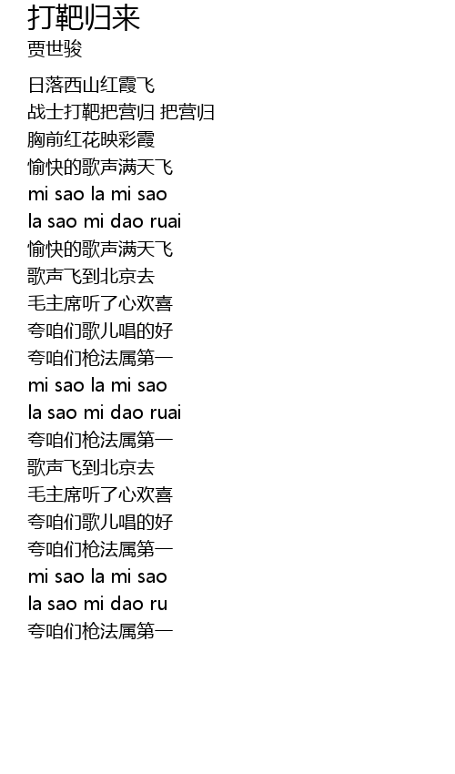 | [00:15.05] | 战士打靶把营归 把营归 |