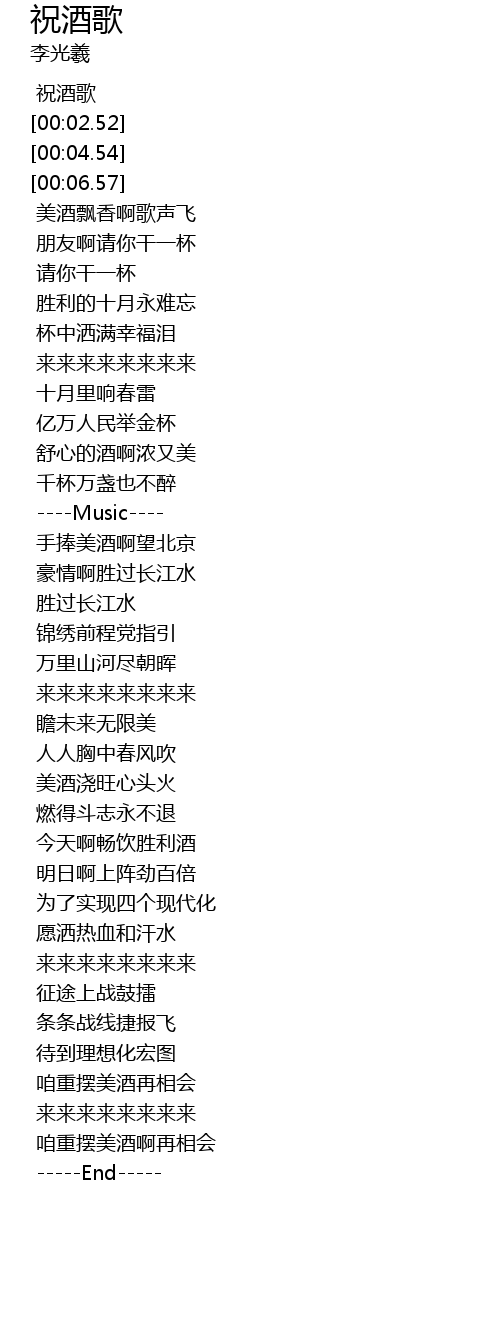 | [00:01.56] | 祝酒歌 |