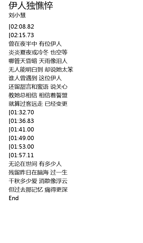 | [01:00.74] | 谁人曾遇到 这位伊人 |
