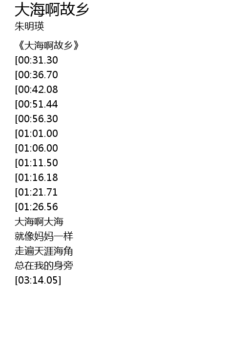 | [01:56.75][00:36.70] | 大海就是我故乡 |