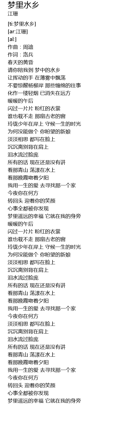 | [00:36.20] | 请你陪我到 梦中的水乡 |