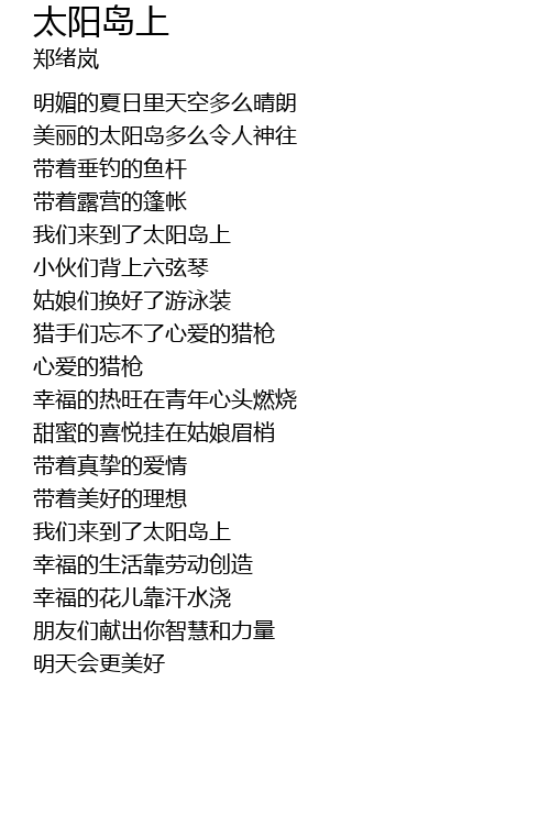 | 歌曲 | 太阳岛上 |