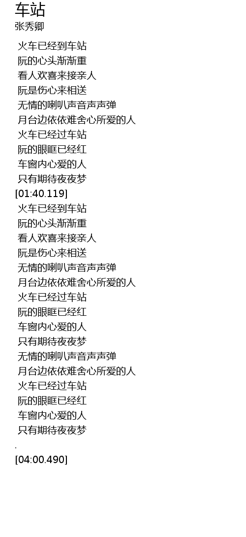 | [03:12.500] | 月台边依依难舍心所爱的人 |