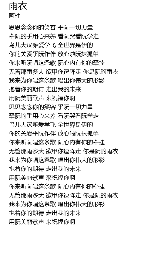 | [02:48.359] | 无管那雨多大 欲甲你逗阵走 你是阮的雨衣 |