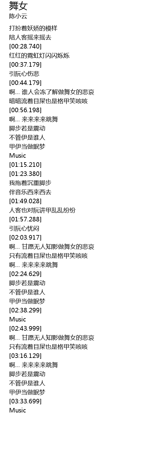 | [03:06.799] | 啊… 甘愿无人知影做舞女的悲哀 |