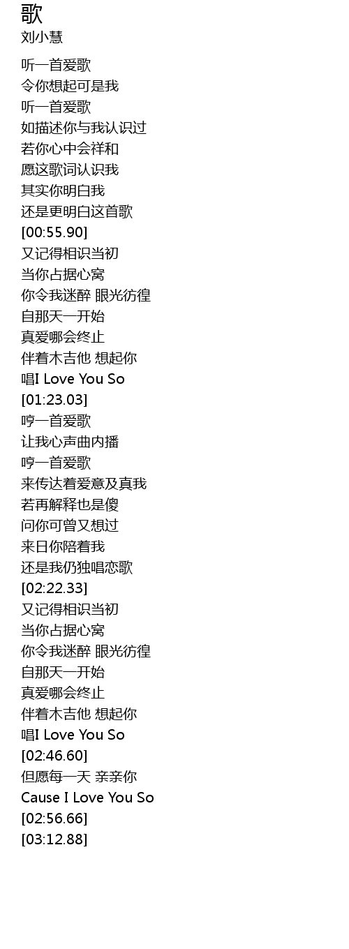 | [01:17.87] | 唱I Love You So |