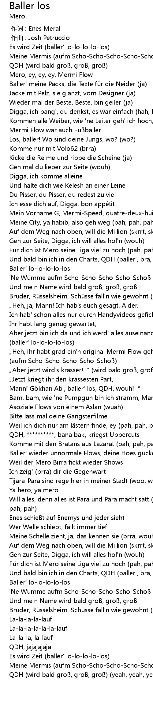 | [01:58.88] | Fü r dich ist Mero seine Liga viel zu hoch pah, pah |