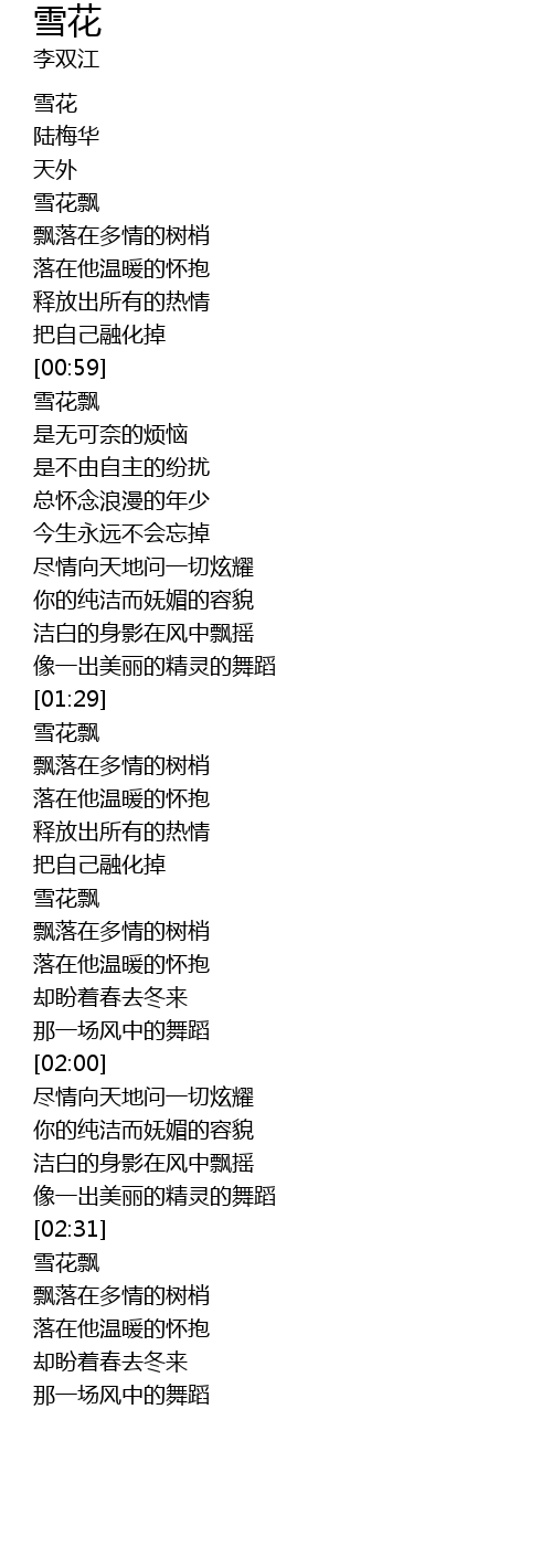 | [01:44] | 雪花飘 |