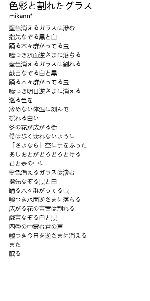 | [00:46.21] | 藍色消えるガラスは割れる |