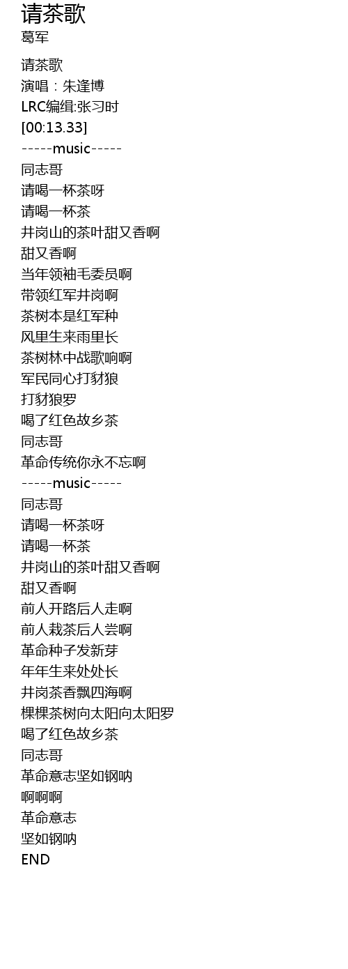 | [01:38.16] | 井岗茶香飘四海啊 |