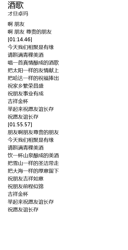 | [00:54.76] | 啊 朋友 尊贵的朋友 |
