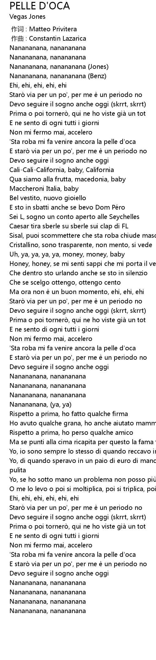 | 歌曲 | PELLE D'OCA |