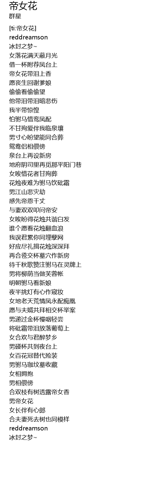 | [03:06.40] | 女地老天荒情凤永配痴凰 |