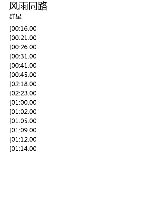 | [02:01.00][01:12.00] | 风雨同路见真心 |