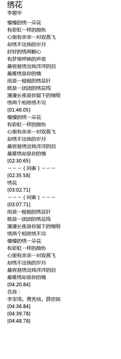| [04:04.90] | 最容易绣出我涔涔的泪 |