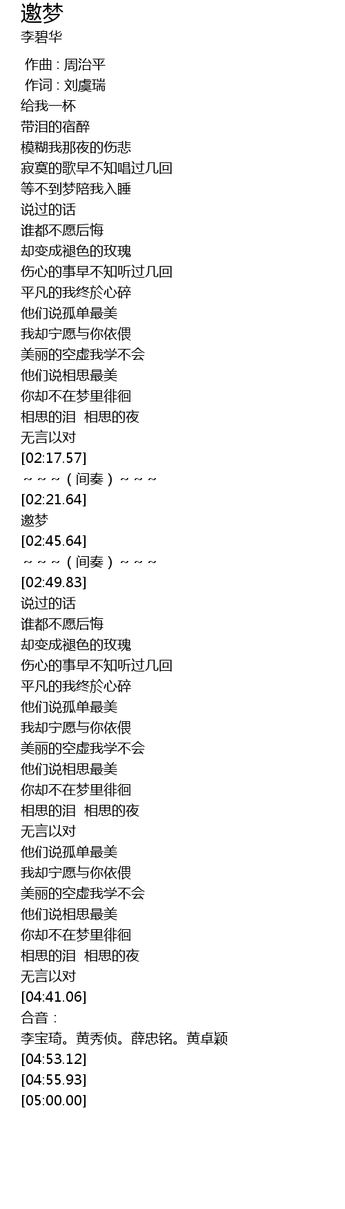 | [04:47.06] | 李宝琦。黄秀侦。薛忠铭。黄卓颖 |