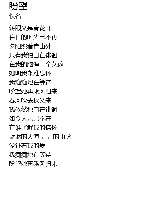 | 歌曲 | 盼望 |