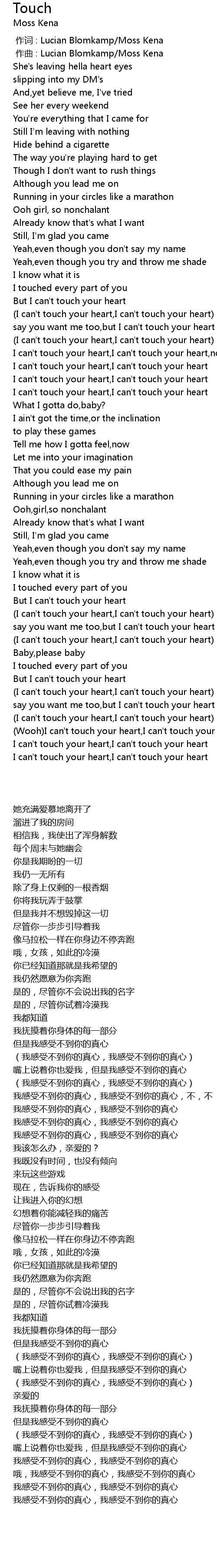 | [00:58.788] | I can' t touch your heart, I can' t touch your heart |
