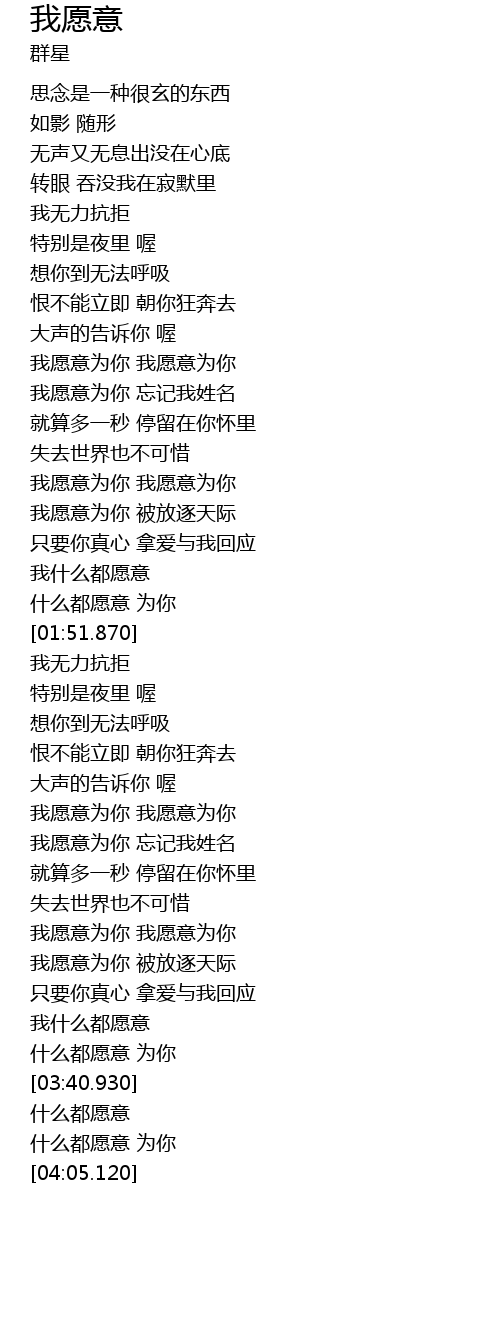 | [03:53.470] | 什么都愿意 为你 |