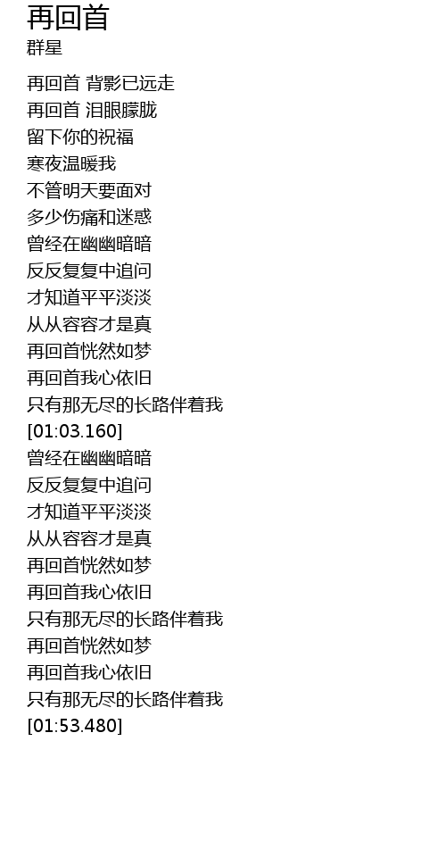 | [00:53.090] | 再回首我心依旧 |