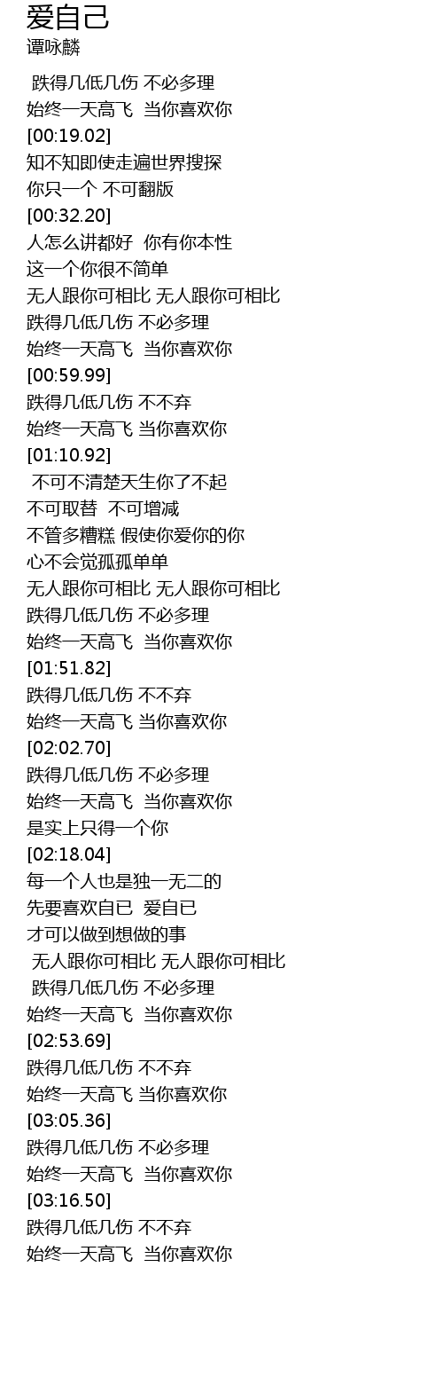 | [02:31.80] | 先要喜欢自已 爱自已 |
