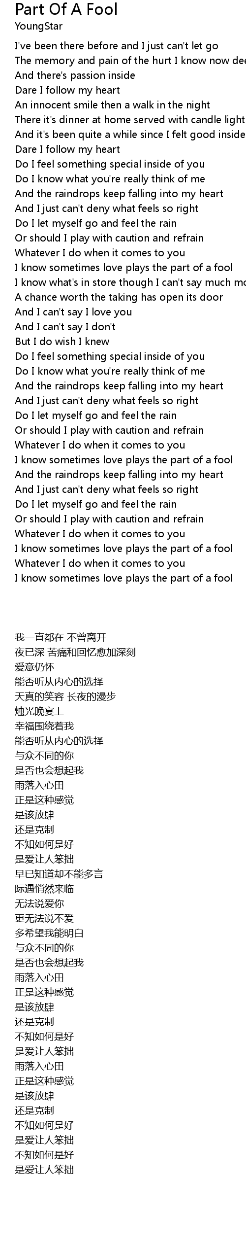 I know sometimes love plays the part of a fool |