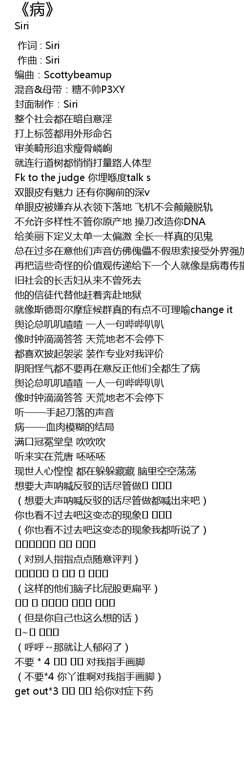 | [01:09.696] | 阴阳怪气都不要再在意反正他们全都生了病 |
