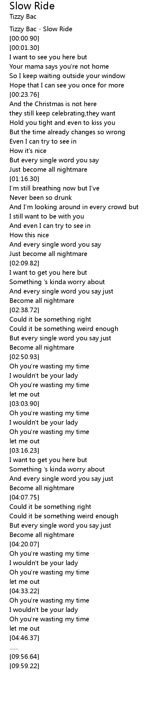 | [00:00.00] | Tizzy Bac - Slow Ride |