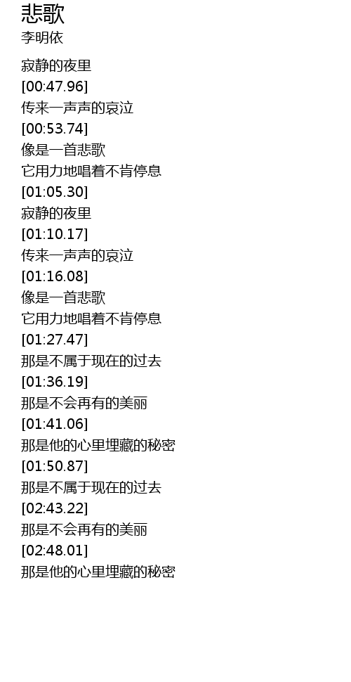 | [00:55.85] | 像是一首悲歌 |