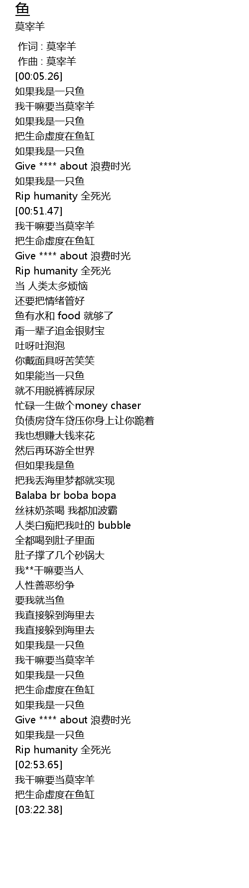 | [03:18.57] | 把生命虚度在鱼缸 |