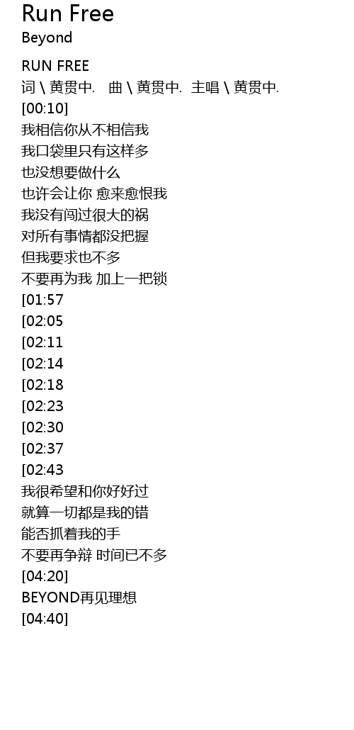 | [04:30] | BEYOND zài jiàn lǐ xiǎng |