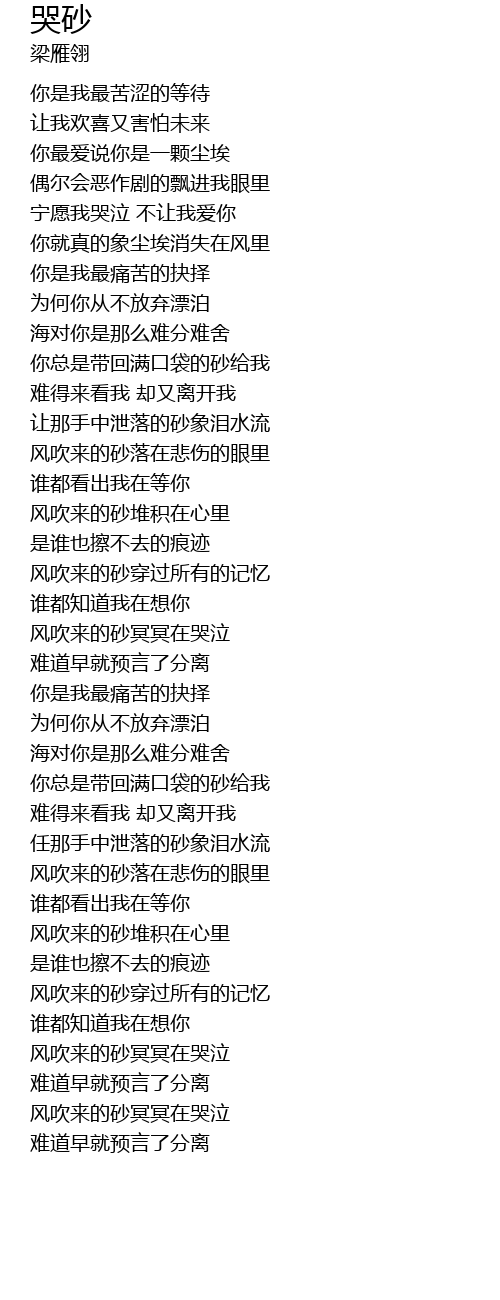 | [01:24.38] | 让那手中泄落的砂象泪水流 |
