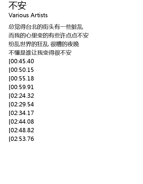 | [00:37.67] | 不懂是谁让我变得很不安 |