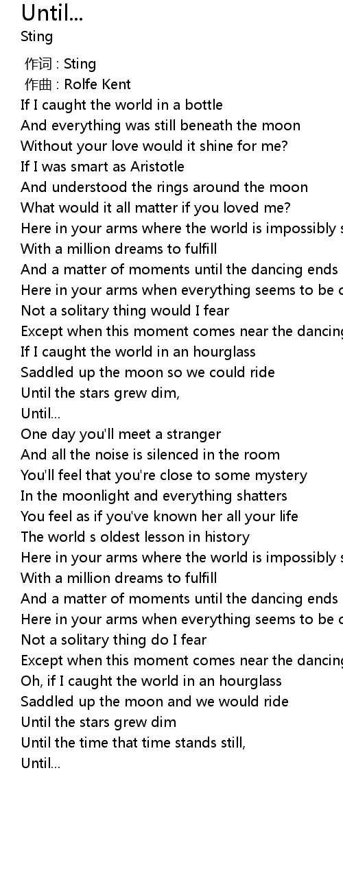 | [00:48.784] | And a matter of moments until the dancing ends |