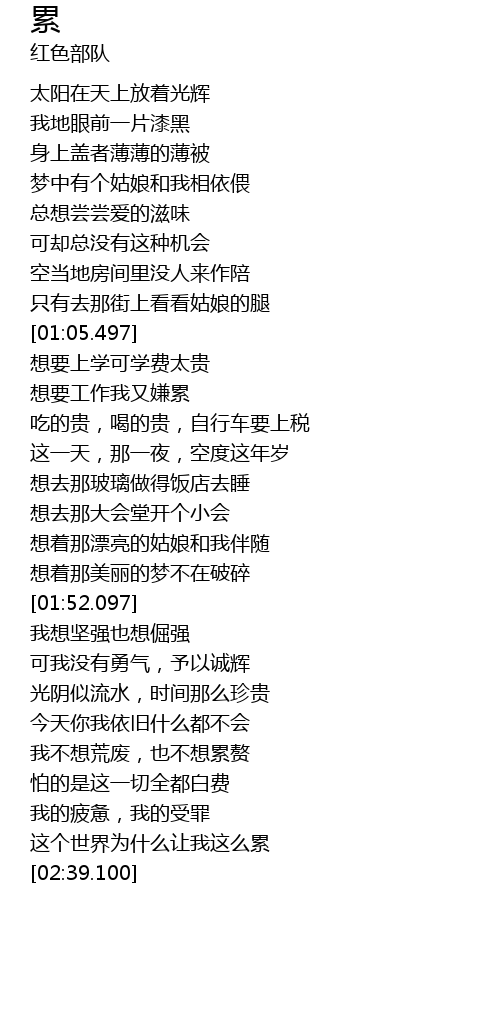 | [02:36.100] | 这个世界为什么让我这么累 |