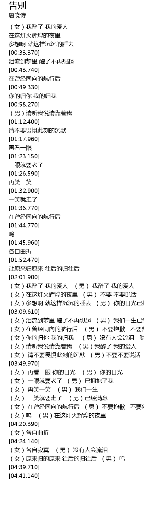| [03:28.300] | (女)你的归你 我的归我 (男) 没有人会流泪 嗯 |