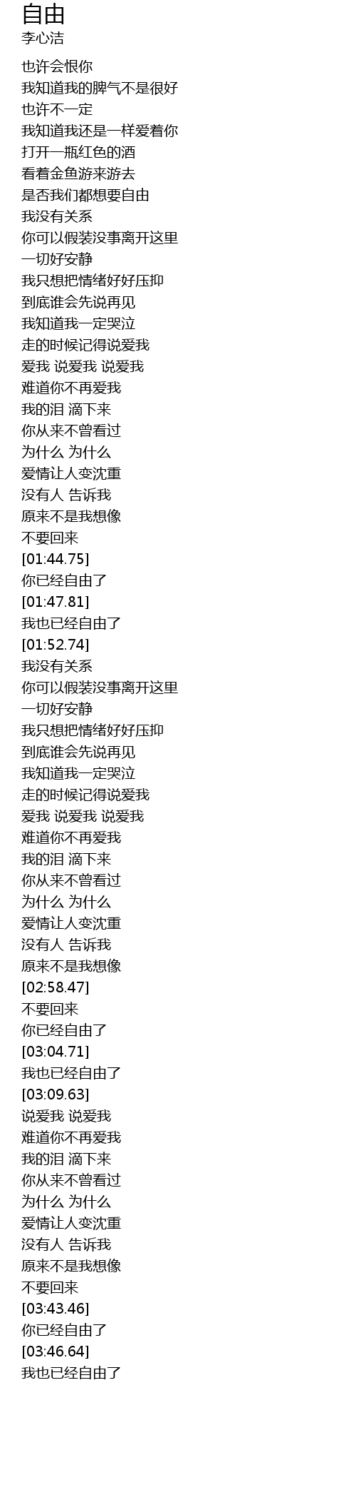 | [03:48.93] | 我也已经自由了 |
