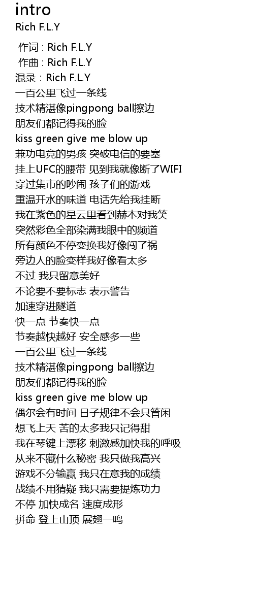 | [00:00.000] | 作词 : Rich F.L.Y |