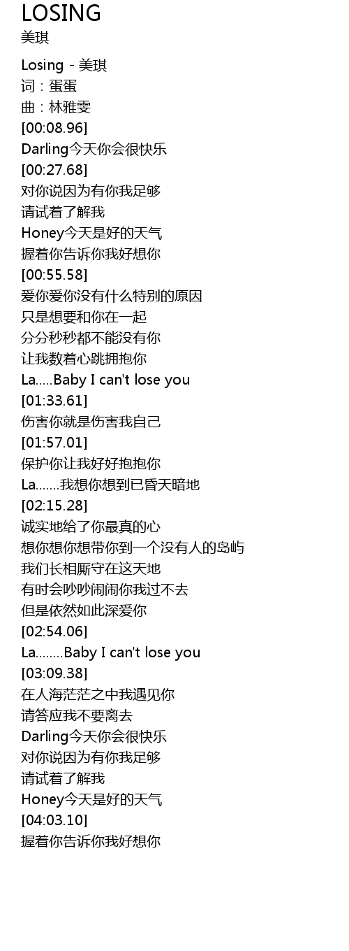 | [00:01.85] | Losing - 美琪 |