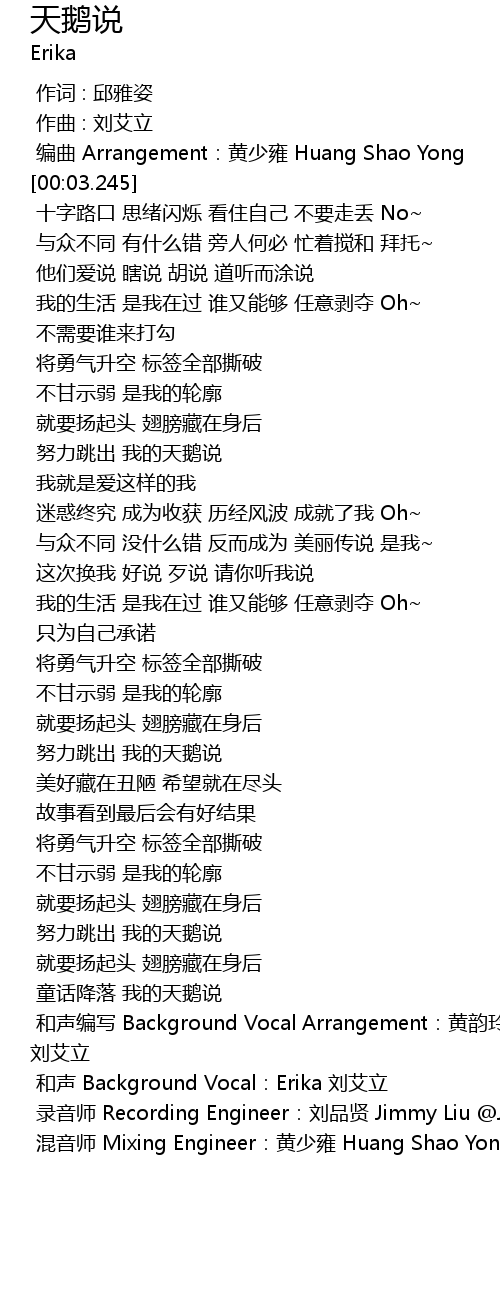 | [03:44.225] | 和声 Background Vocal:Erika 刘艾立 |