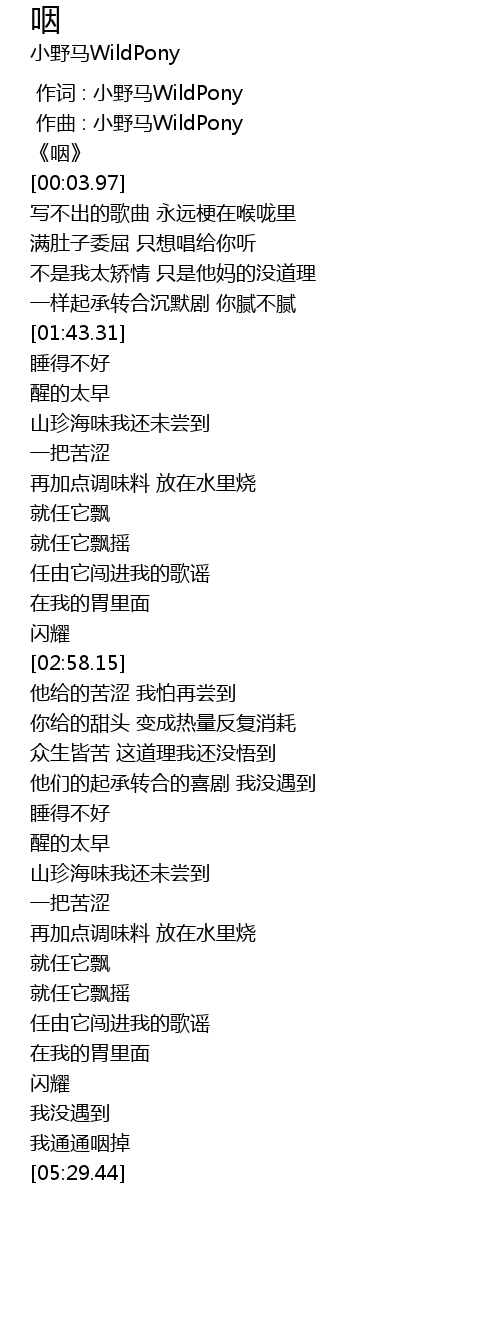 | [00:00.509] | zuo qu : xiao ye ma WildPony |